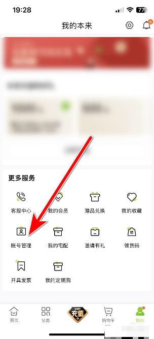 1、打开手机本来生活的首页,选择【账号管理】;