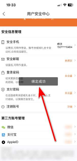5、系统弹出【绑定成功】的提示,即可绑定微信账号。