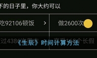 2、与生中钟对应的死之钟,你需要选择自己会在多少岁去世。当然这里只是需要你对自己进行一个猜测与预判,你可以自由选择一个你预测自己死亡的年龄,当然你也可以拒绝!当选择好年龄之后便会显示目前是你人生中的几时几分,在剩下的日子里你还可以吃多少顿饭、XX多少次、度过多少个周末、享受多少个长假。建议亲身体验一下看到这种数据的那种感觉,是喜悦还是心酸…