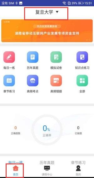 1、进入软件首页,可按需点击每日一练、历年真题等功能模块,针对性开展英语知识巩固与练习;