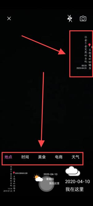 3、可以添加地点、时间、美食、电商和天气等水印。