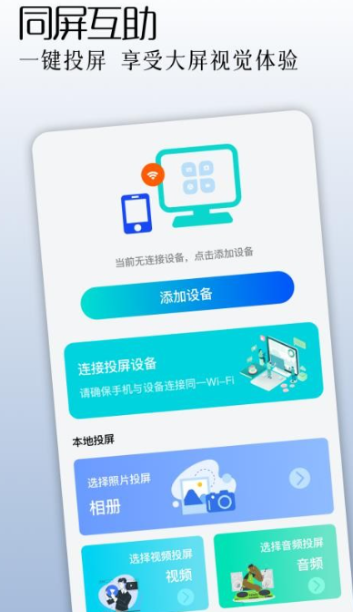 1、下载软件后打开,即可连接大屏设备,方便屏幕投影。