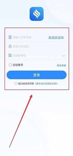 2、输入手机号、验证码和单位,勾选同意并登录。