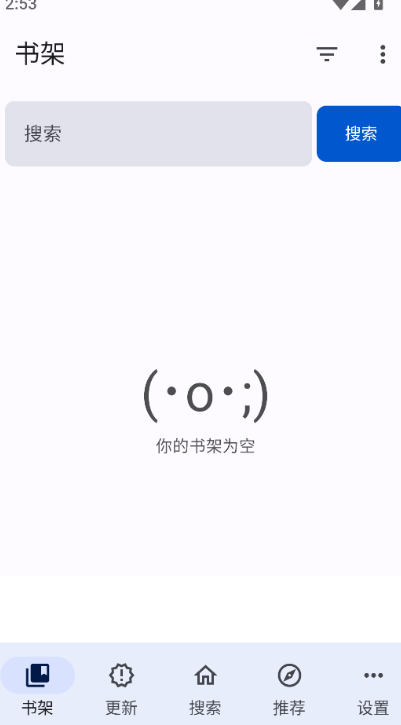 2、阅读完成后,可以看到【书架】、【更新】、【搜索】等栏目中并没有像其他漫画软件那样,展示出详细的分类。