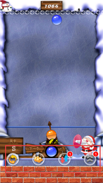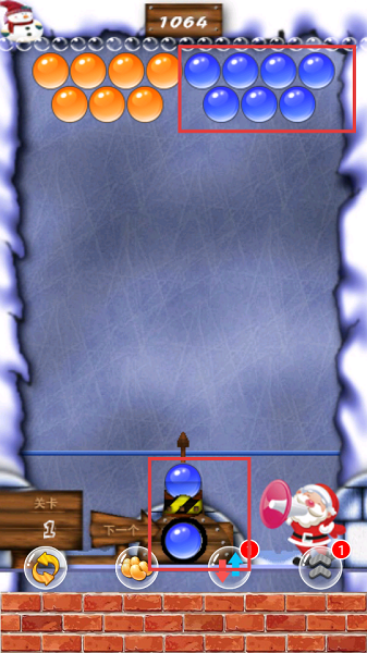 2、瞄准上方蓝色泡泡区域,发射蓝色泡泡,尝试消除同色泡泡。