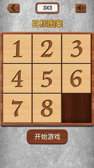 4、以3*3为例开始游戏,我们的目标图案就是按顺序排列的样子。