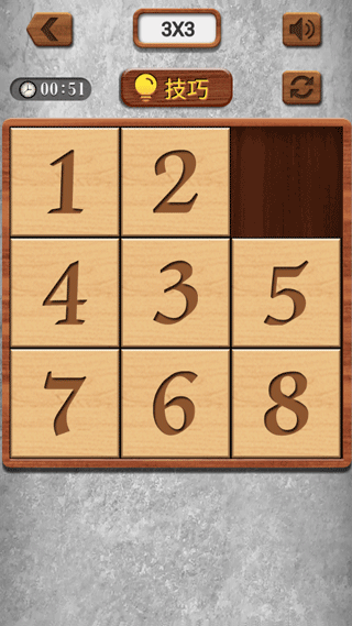 3、挑战自己的大脑和手速,游戏中移动数字方块,让所有数字顺着数字次序排列。