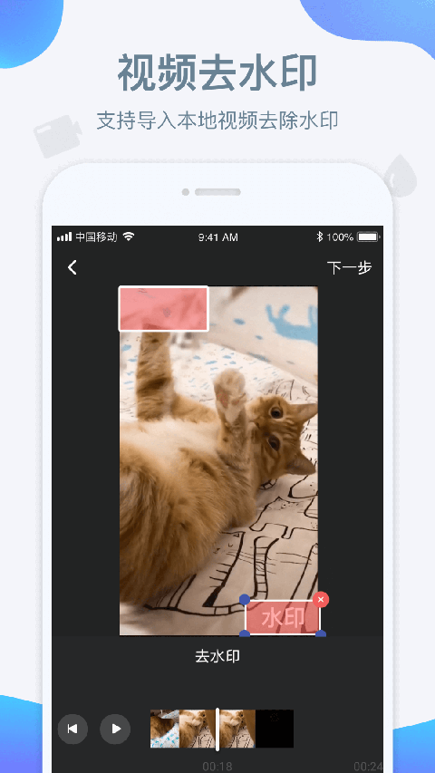 1、视频去水印:支持设置多个位置去水印。