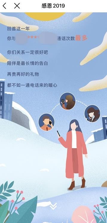 中国移动手机APP内上线了主题为“感恩2019”的2019移动年度账单,包括用户第一次使用中国移动服务的时间、与用户通话次数最多的号码、通话时间最长的一天、参与的活动数量、留下足迹的地方数量等一年以来用户的主要数据。