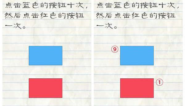 最囧游戏2第34关攻略:点击蓝色的按钮十次,然后点击红色的按钮一次