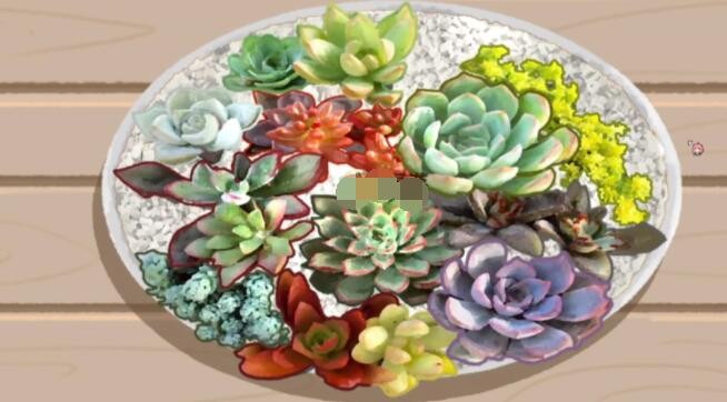 1、首先点击右下角的水枪,会自动浇水,各个多肉的位置就会显示出来