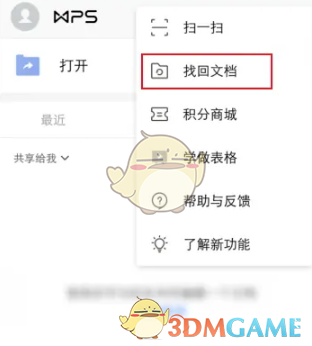 以上就是小编带来的手机wps怎么恢复删除的内容?wps找回删除的文件方法,更多相关资讯教程,请关注3DM手游网。