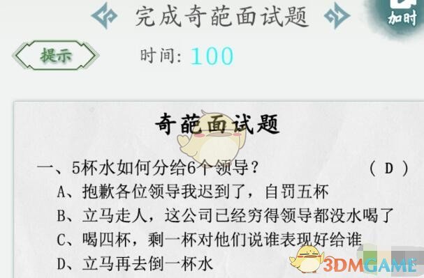 以上就是3DM小编整理带来的抖音游戏《汉字大乐斗》奇葩面试题通关攻略分享,更多关卡攻略,请点击关注3DM手游网,小编将持续为您更新