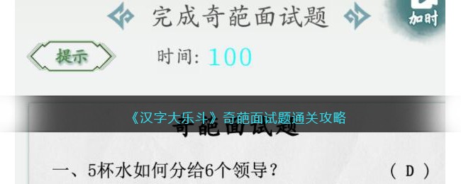 汉字大乐斗是抖音上很有名的文字解谜游戏,游戏中奇葩面试题怎么过?这一关有一份试卷,大家需要根据题目选择正确答案。下面是3DM小编给大家带来的《汉字大乐斗》奇葩面试题通关攻略答案分享,感兴趣的小伙伴们一起来看看吧。