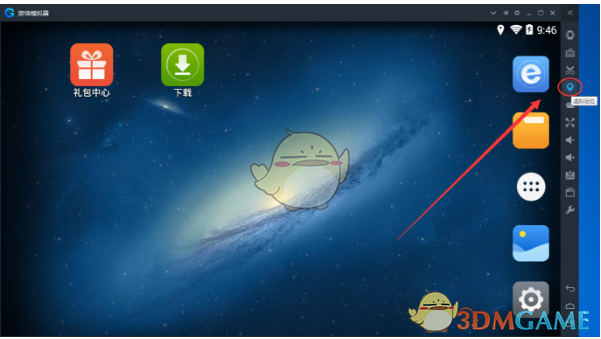 1、首先打开游信模拟器,然后在其界面右侧的工具栏中找到“虚拟定位”功能;