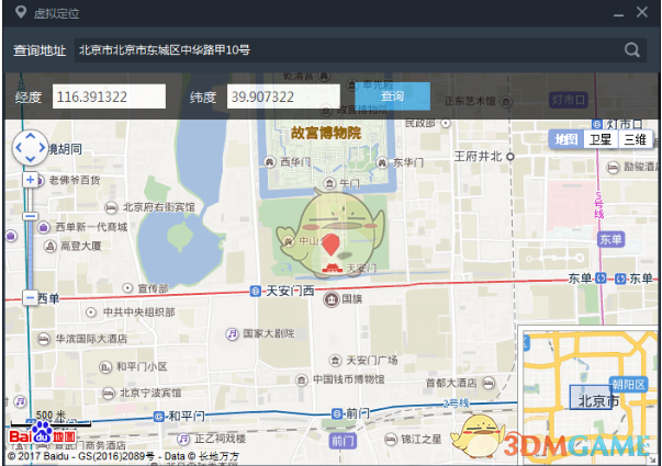 4、或者我们也可以在“查询地址”后边的输入框中直接搜索详细地点,还可以通过输入经纬度来搜索地点。