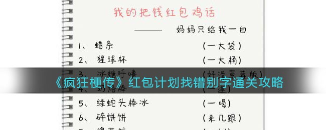 以上就是3DM小编整理带来的抖音小游戏《疯狂梗传》红包计划找错别字通关攻略,还没有通关的朋友,不妨来看看上方的攻略!更多精彩内容,请点击关注3DM手游网!