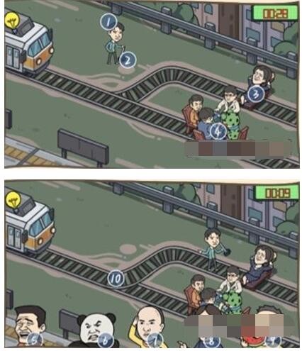 2、其次吃瓜群众就会出现,接着是需要玩家们将这些吃瓜群众全部放到轨道上。