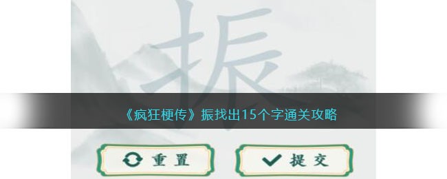 疯狂梗传是抖音上很火的一款休闲益智娱乐类闯关游戏,其中关卡振找出15个字怎么过?这一关是拆字玩法答案包含振、辰、三、二、一、匕、八、人、丿、厂、抡、扒、扌、仑、亅等。今天小编就给大家带来了《疯狂梗传》振找出15个字通关攻略,还没有通关的的朋友来看看具体的过关方法吧。