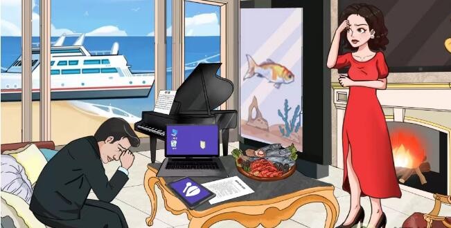 6、拖动电视机旁的雕像到强哥脚边地板,点击出现的私房钱