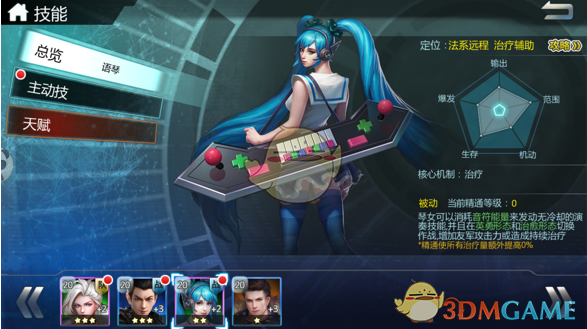 作为超神学院在唯一的奶妈,地位自然是不可动摇的,喜欢用音乐来治愈大家,在治愈的同时还可以获取敌方情报及时带到前线,有着可爱的外表,下面为大家简单介绍一下游戏中语琴的背景以及技能,看完之后快去试试玩吧。