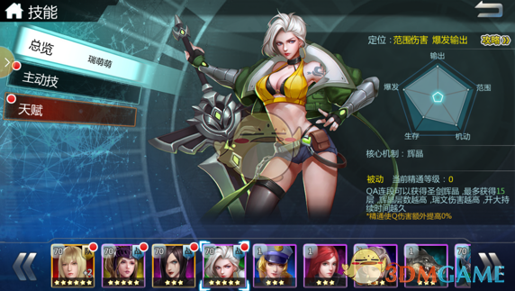 被动:QA连段可以获得圣剑辉晶,最多可以获得15层。辉晶层数越高,瑞萌萌伤害越高,开大持续时间越久。(精通能使Q伤害得到额外提高)
