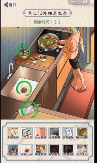 无敌脑洞王者消失的恋人-找出十二处细思极恐处是:未接通话、三人合照、点点血迹、挣扎痕迹、诡异的笑、颈部抓痕、贴身之物、下水道堵塞、菜刀、水费超标、麻绳、筷子立饭