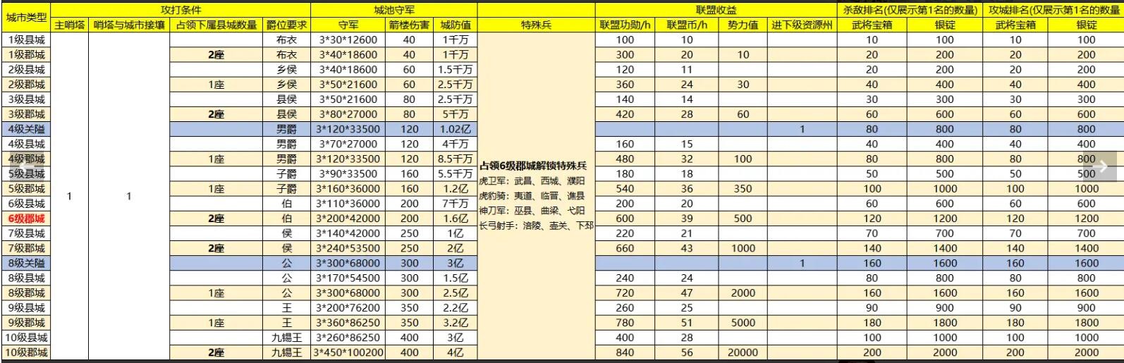 主目标:在关隘开关前铺路至与关隘接壤,进高级资源州,点击关隘建筑可以看到开关倒计时。次目标:根据天下大势里面的内容需求来安排铺路和打城,拿到更多的奖励,比如第一个阶段是要占领两个2座1级县城,可以有35次的免费抽取卡包的次数,占领1座的话只有20次。次目标:提升联盟爵位,攻打郡城的必备条件之一是达到指定爵位,而提升联盟爵位的途径是占领郡城,只有郡城才会产生势力值,势力值用来提升联盟爵位最后: 也可以根据当前州的态势进行决策,比如可能会跟其他联盟撞了,那么就需要联盟官员发挥社交能力,与其他联盟谈妥路线,避免出生州内战消耗过大,影响进入高级资源州的进度。