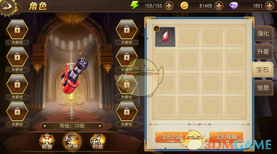 2、 宝石的合成:前四级二合一升级,后面三合一升级,高级宝石会有小概率合成失败的可能!