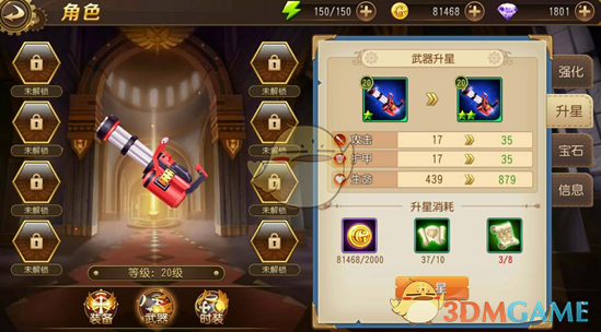 强化升星:变强的基础,可提升自身等级*2的装备等级