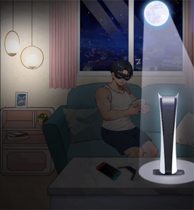 1、首先把【眼罩】给男人,打开窗户让月亮照着【游戏机】;