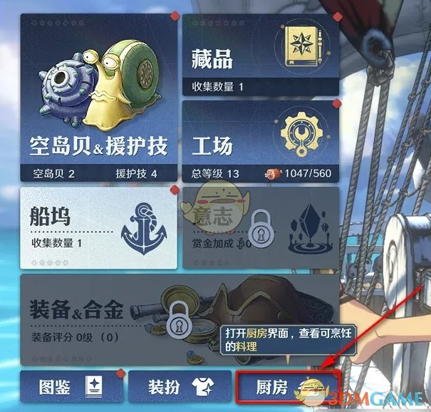 2、在弹出的菜单栏页面,点击厨房玩法前往;