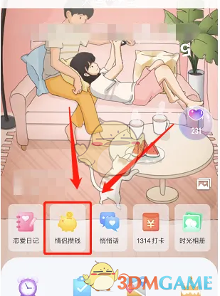 2、进入到恋爱记的主界面,点击“情侣攒钱”进入,如图所示。