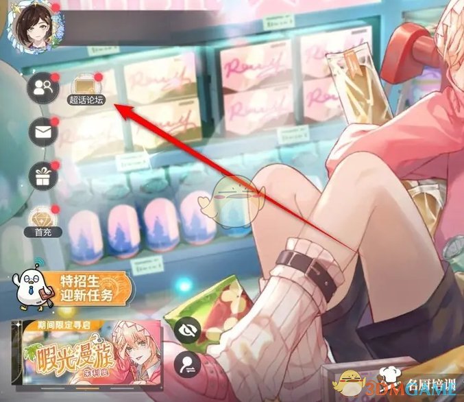 1、前往游戏后,点击游戏主页左上角的超话论坛玩法前往;