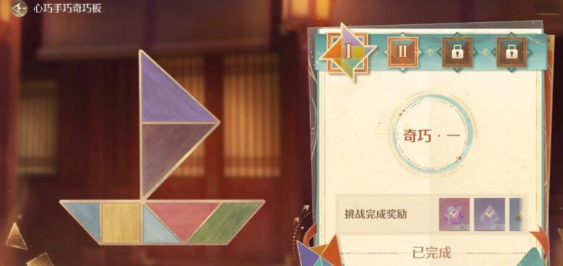 1、心巧手巧七巧板是活动期间的一个解密玩法