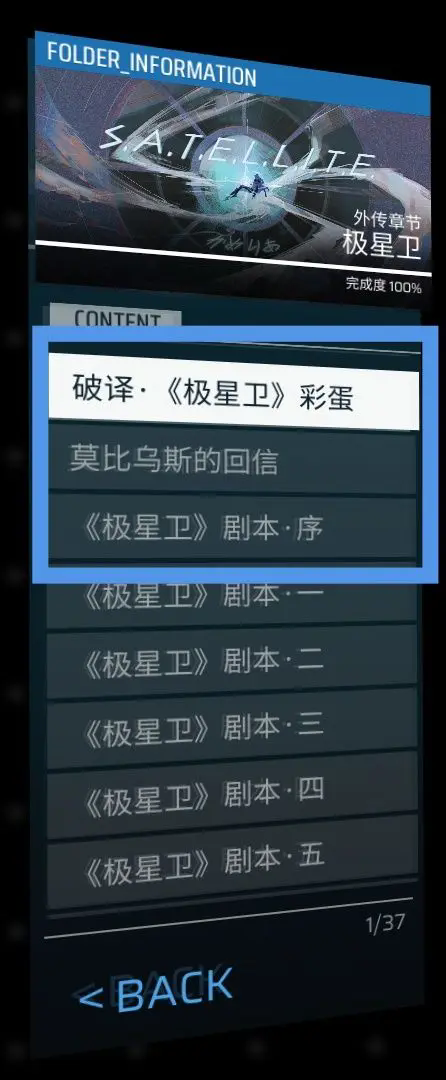 3、《极星卫》剧本·序 掉落条件完全未知,作者用两个档测试的结果是极星卫章节所有曲目都有可能随机掉落,并且每个存档可能会固定不一样的曲目掉落,目前测出来只确定无分数要求,可放置刷取。