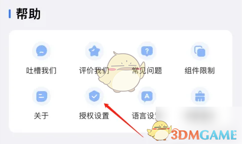 2、在更多页面,找到【授权设置】选项,点击它