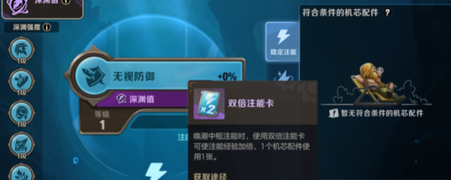 除此之外,指挥官们还可以使用双倍注能卡来获得加倍经验,1个机芯配件消耗1张注能卡,如果选择的机芯配件数量大于双倍注能卡的数量,则优先将属性更高的机芯配件的注能加倍,从而更快的提升深渊值和深渊属性,助力指挥官们在深渊之路中遥遥领先。