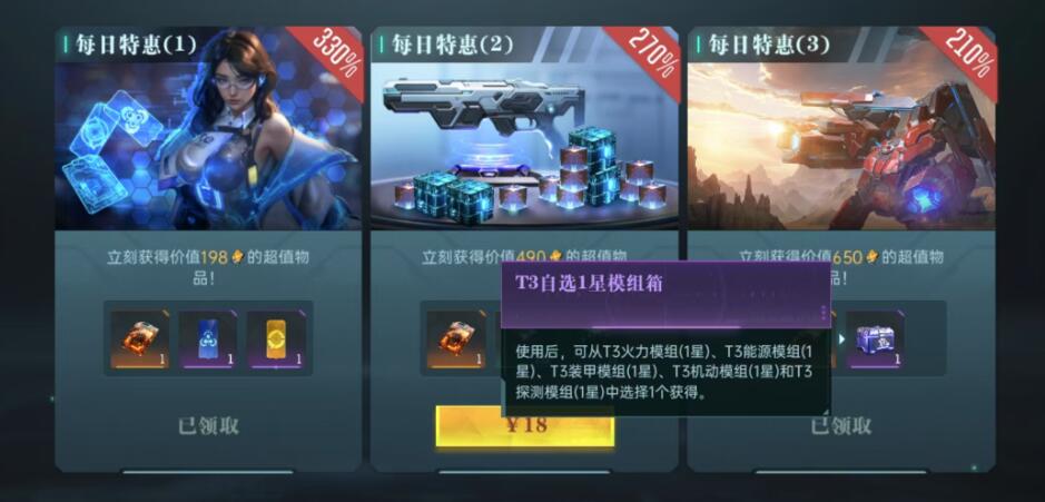 限时活动如星际宝藏是模组最大量拿到的方式,平民玩家选择88抽档位(约5808信用点),保底获得12个T3模组。中氪拉满1798抽可直接合成T5兵种。赛季任务每周刷新,完成虫巢可额外获取模组箱。