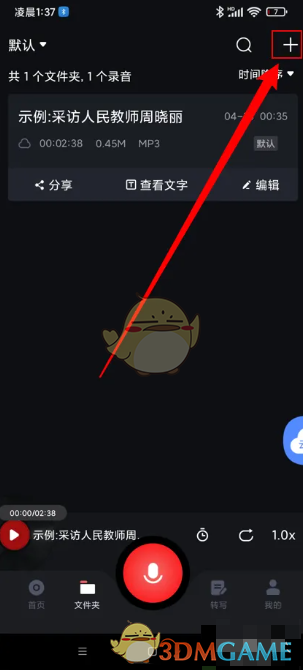 1、打开录音专家app,点击app主页下方的“文件夹”;