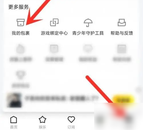 打开桌面上的虎牙直播app点击进入我的页面,点击我的包裹。
