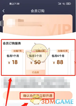 3、进入会员订购,选择会员订购服务,点击【确认协议并立即开通】。