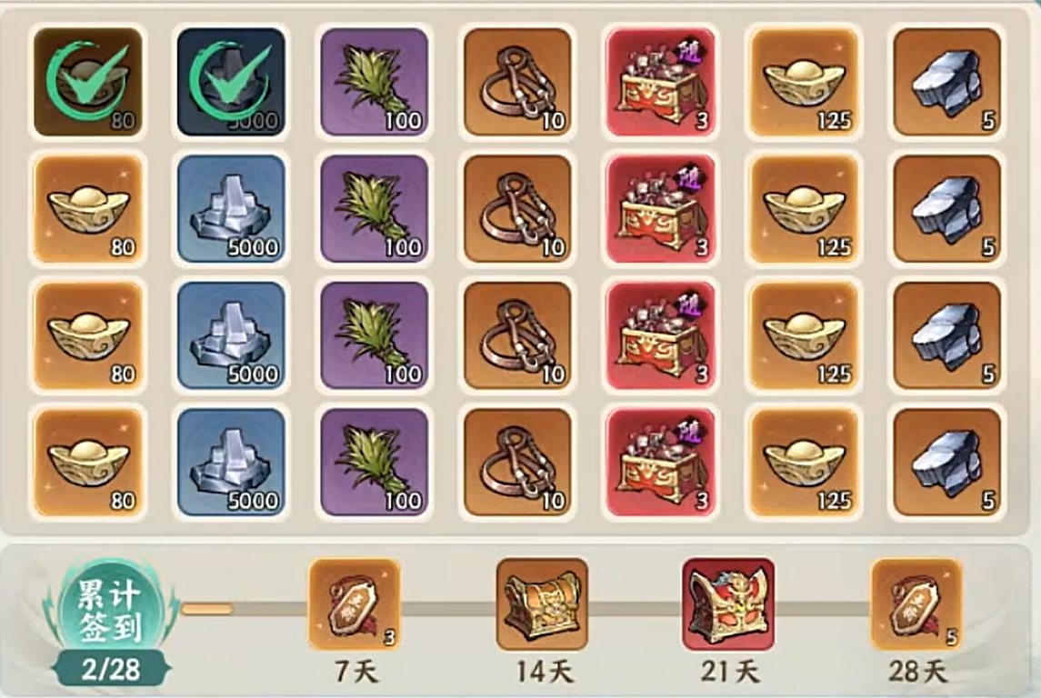 除此之外,百战群英所开放的各类活动也能让玩家拿到点将令,例如签到次数达到七天和二十八天时,都可直接领取累积签到中的点将令奖励。这些点将令奖励都有时限要求,若玩家在时限内没能达成领取点将令的任务要求,就会将奖励直接错过,所以玩家们还请多翻翻游戏内的活动日历,看看自己是否还有活动未完成。拿完上述途径中的点将令后,各位还可去商铺里获取,最方便的就是用元宝来进行点将令的兑换,但一些其它的兑换货币也能进行换购,只不过它们都有兑换次数限制,不像元宝那样可无限兑换。此外,有意愿在游戏内氪金的玩家,也可通过购买礼包的方式来获取点将令。