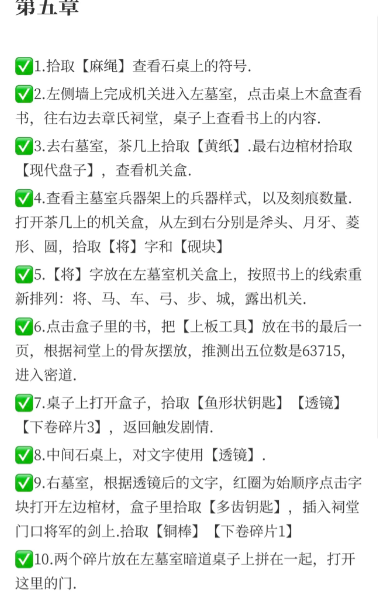 《缠重山2冥玉钞》第五章通关攻略来了:第五章需综合解谜开启结局。关键步骤包括:排列“将马车弓步城”打开机关盒;根据骨牌推算密码63715进入密道;组合透镜与拼图破解多处棺椁;最后用铜棒走完路线图,获取手摇杆并跟随NPC指引即可通关。