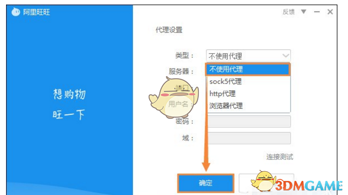 3、将代理设置中的类型设置为“不使用代理”→“确定”,即可解决。