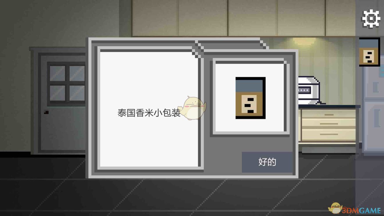 来到厨房,在橱柜下面取得两袋泰国香米,以及冰箱上的纸条获得提示。
