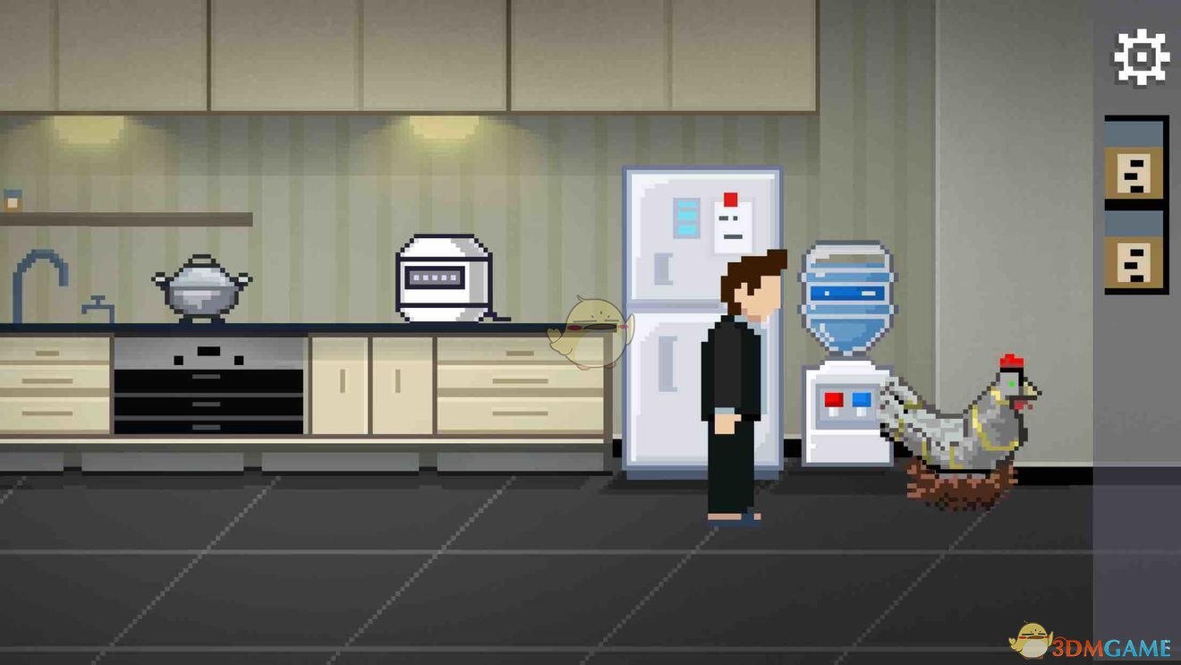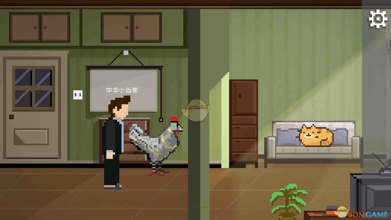在门厅可以看到一只铁公鸡。一直点击公鸡,便可以将公鸡赶入厨房。可以欣赏到铁公鸡走路时的英姿飒爽。