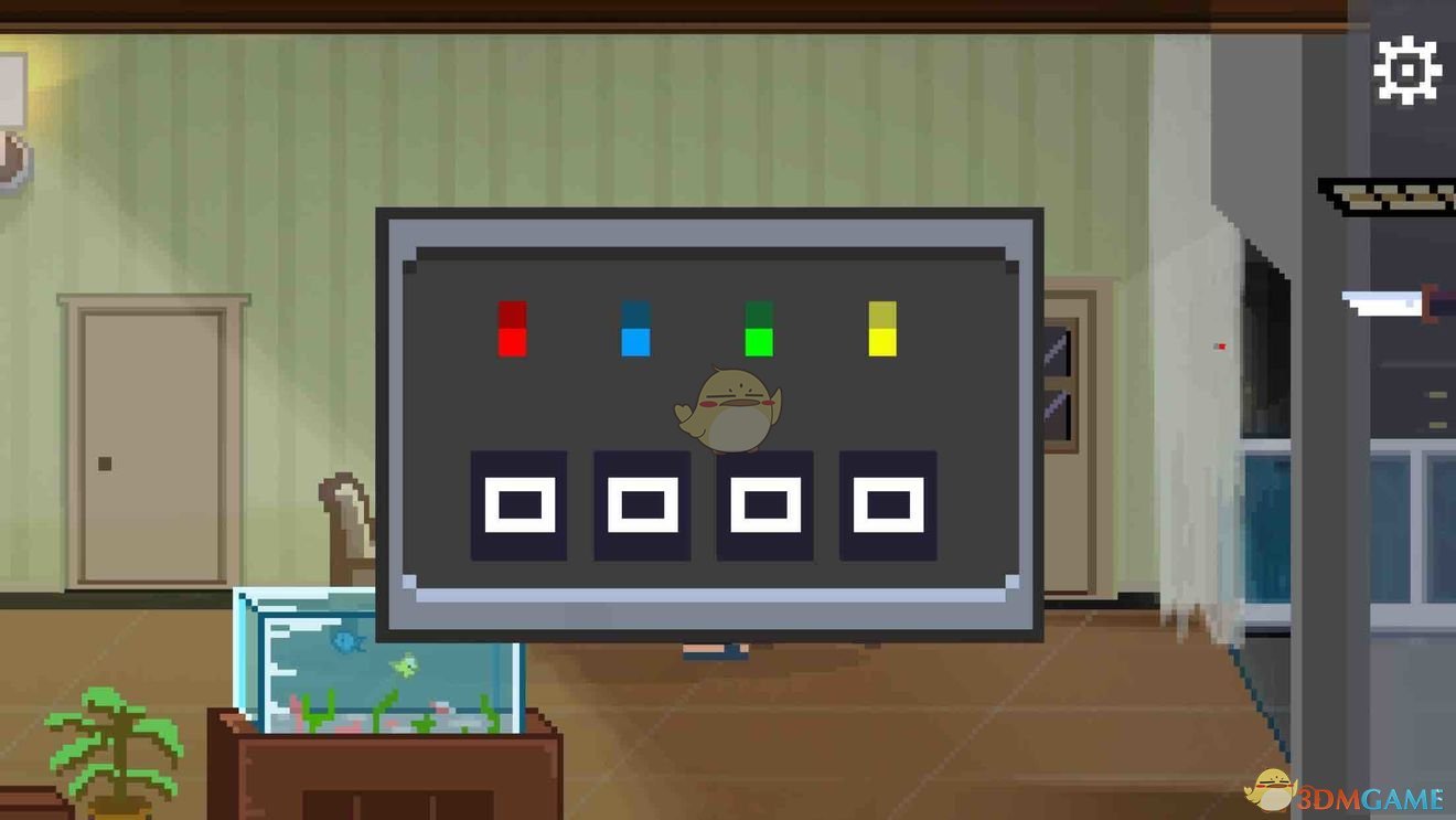 进入左侧带有电脑的房间,记住黄色小虫的运动轨迹,此时再次回到客厅,点击餐桌上密码箱将与颜色相对应小虫的运动轨迹,选择的密码,即可获得白色方块。