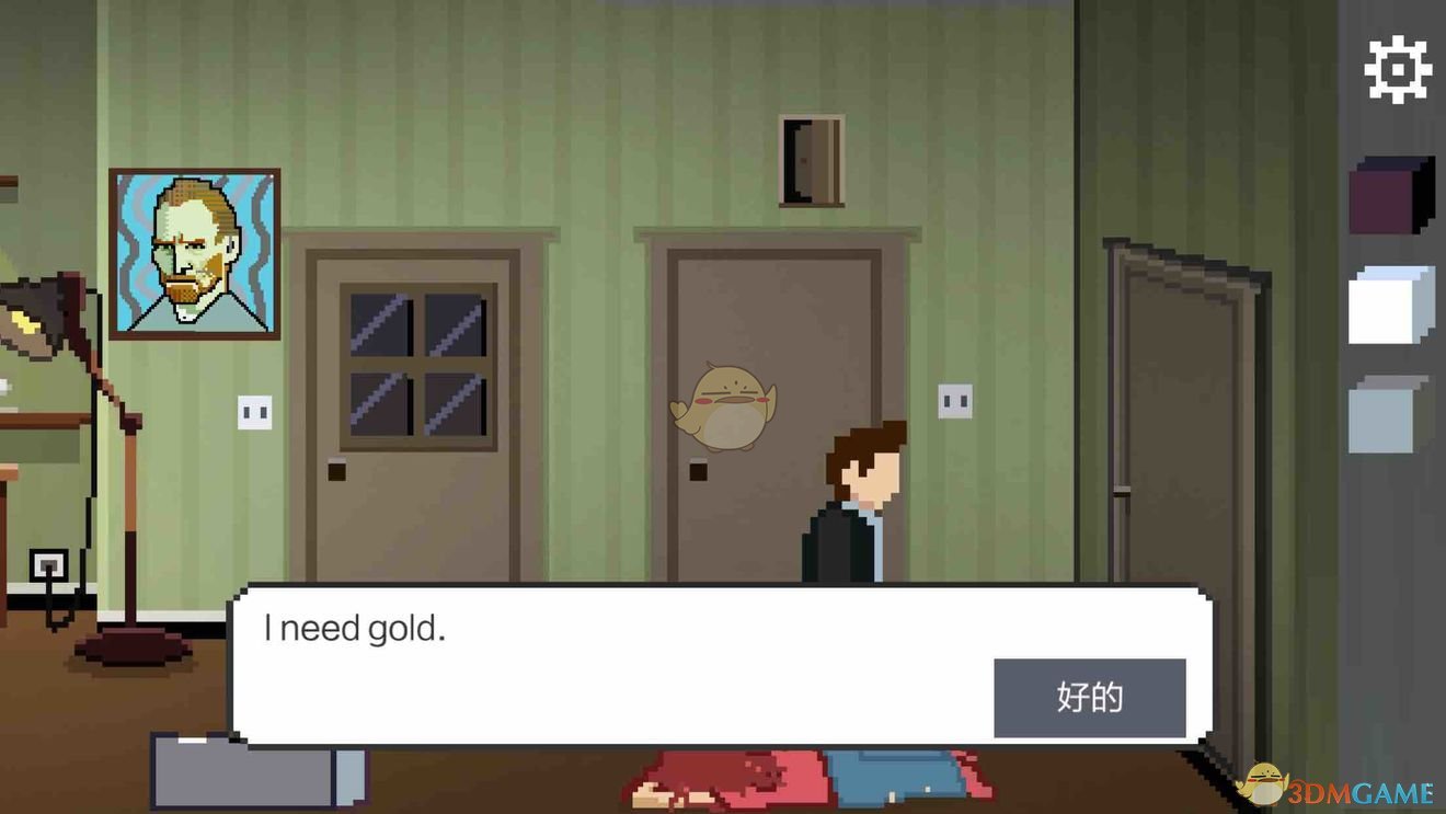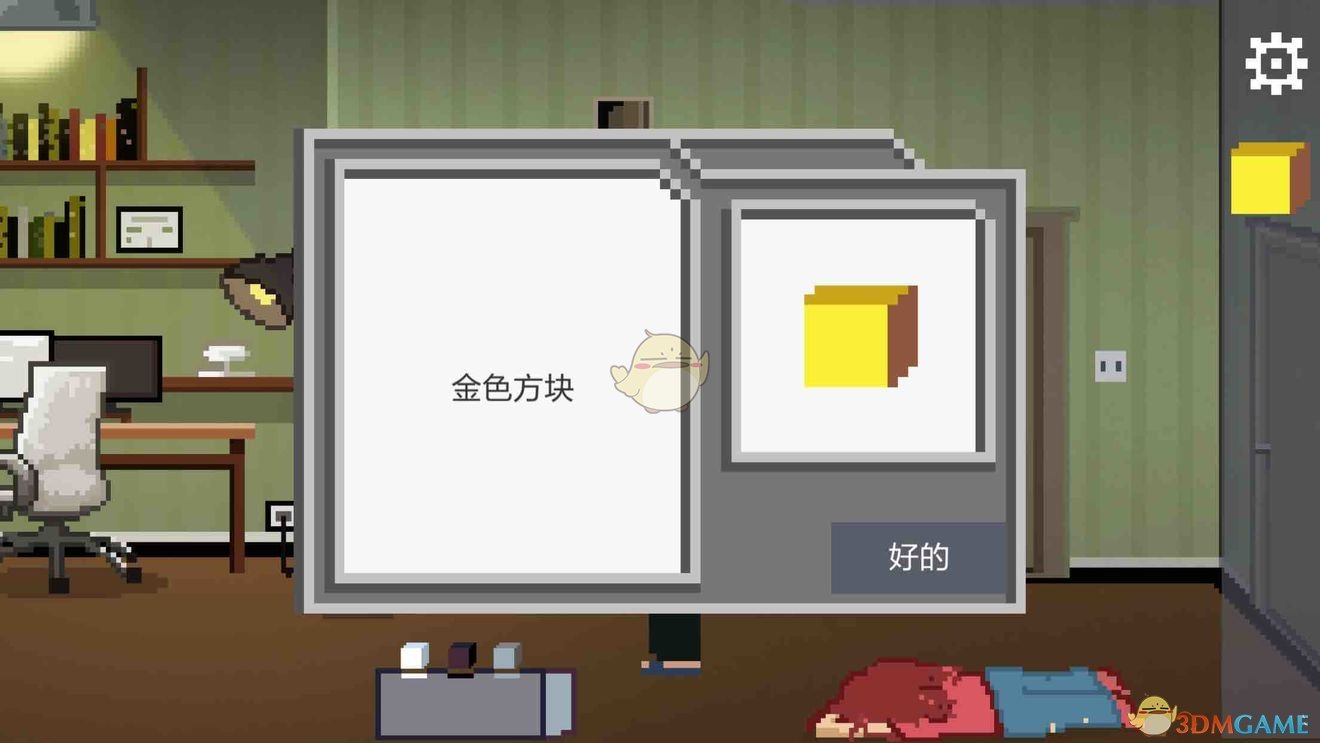 点击妻子尸体头顶上的灰色箱子依次将三个方块放入后,即可获得金色方块