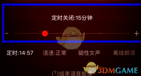 5.在声音阅读的模式下,双击底部,会弹出声音阅读控制界面,可以看到一个语速,可以左右滑动,调整念书的快慢。